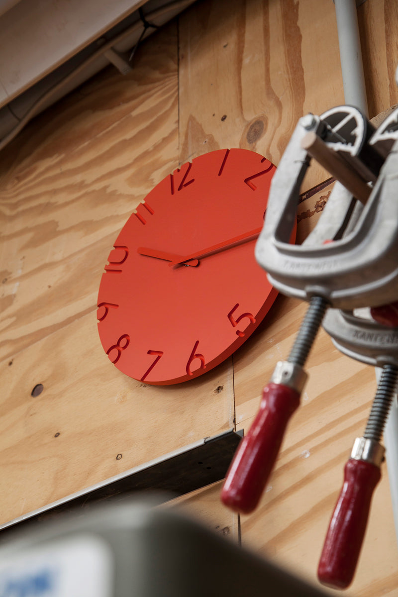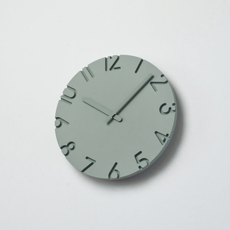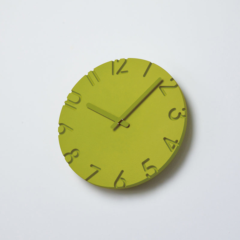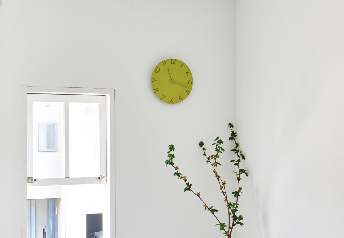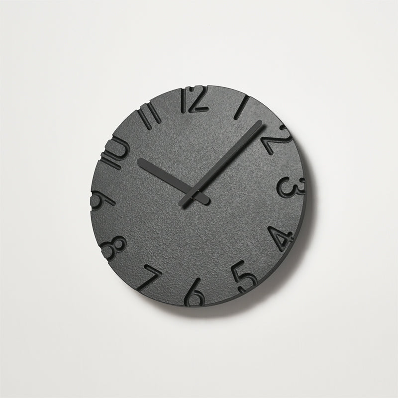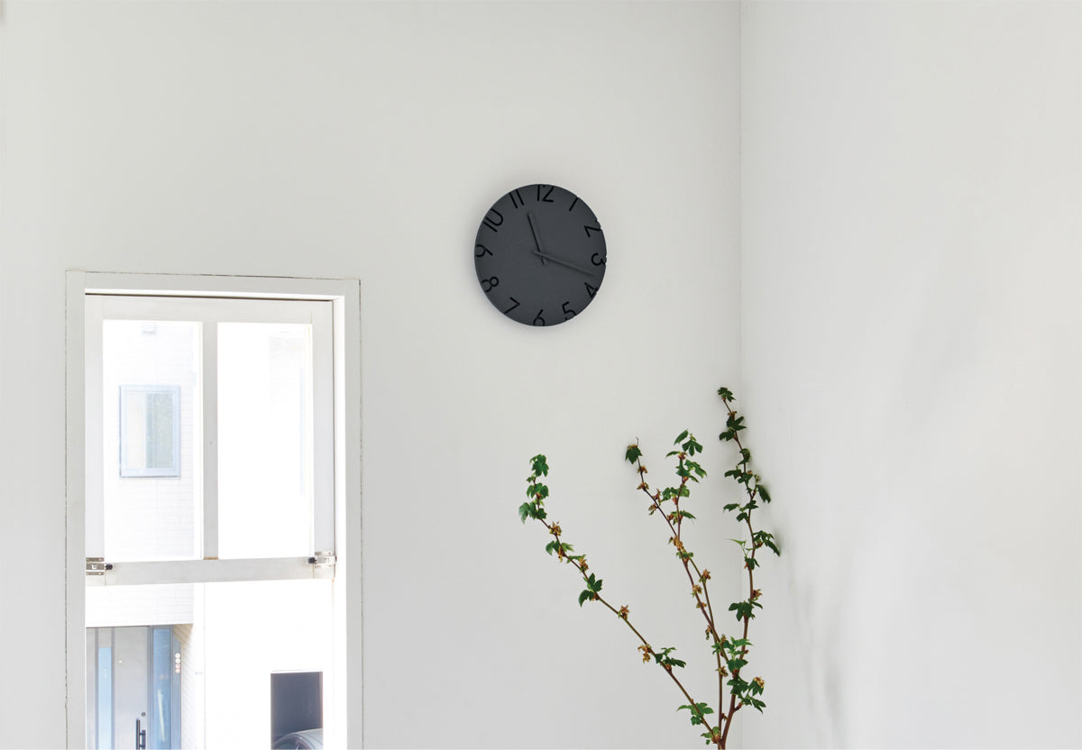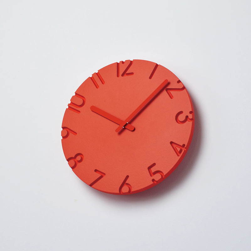 Each of the available color tones provides a subtle accent in space. This “CARVED COLORED” is a new variation of the “CARVED” series, released in 2010 and winning the Good Design Award that year. By adding color, the combination of its flat face and carved letters looks like color gradation. Although its design is as minimal as possible, the clock still adds color to your space.