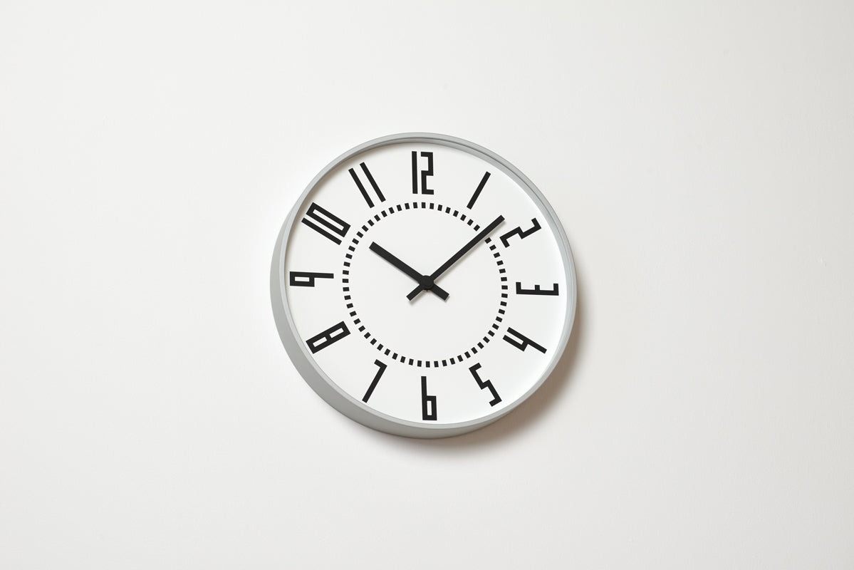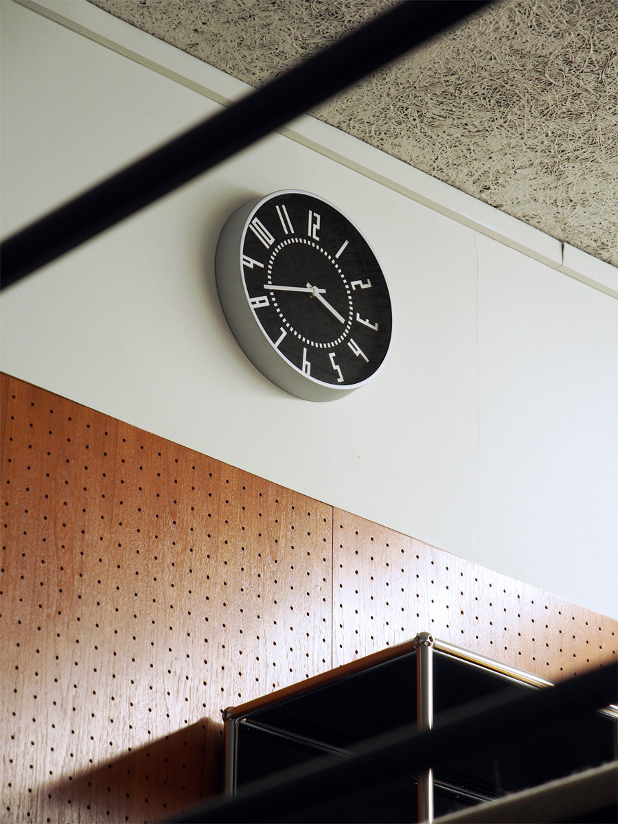 The clock has a beautifully designed dial with original number types, and its frame is made with aluminum sand casting and lathing. The distance between its dial and glass is minimized. It truly is a design clock in its ultimate simplicity.