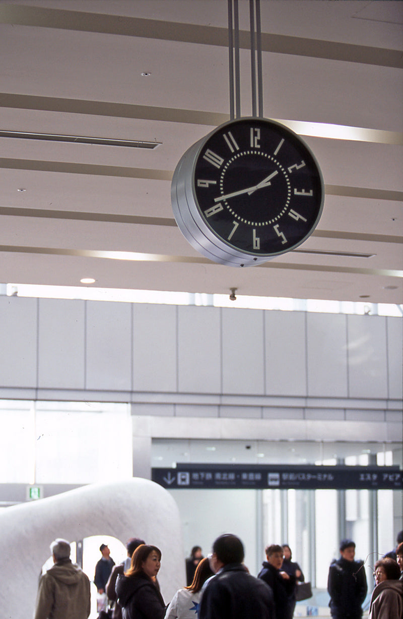 Takenobu Igarashi is the designer behind the “Big Clock of Stars” which hangs on the outer wall of Sapporo Station in Hokkaido Japan since 2003. He has also designed another clock on both east and west concourses of the same station. The clock has double-faced dials in black and white and the clock numbers half below are designed in a way for easy reading from the ground. This new clock was introduced with its design direction based on the Sapporo Station Clocks.