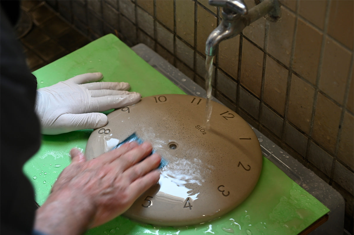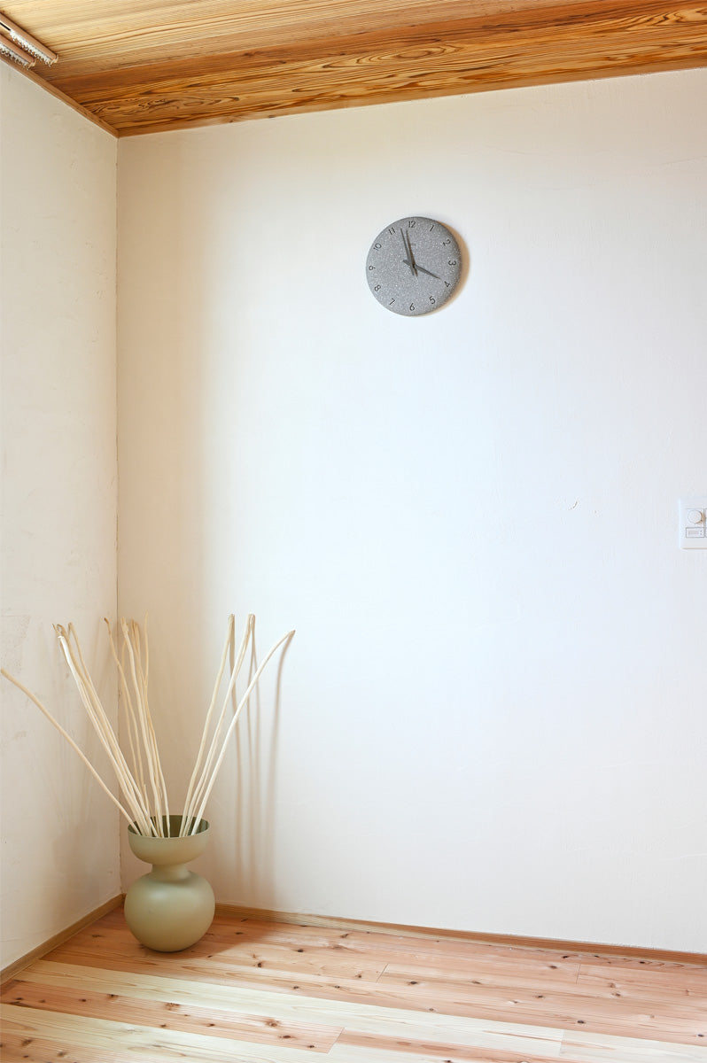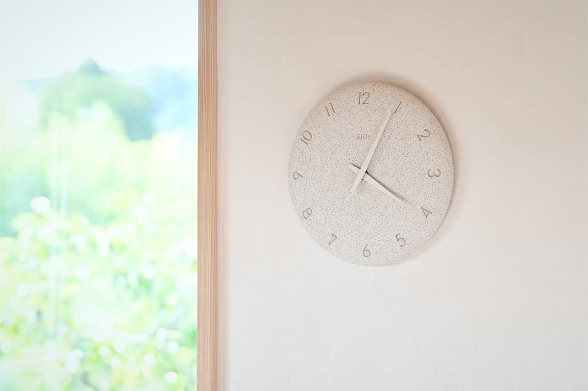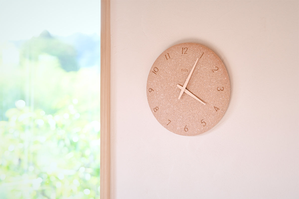 This is the third SiO2 CLOCK (diatomaceous earth clock) in the series, featuring the distinctive “Araidashi” washed finish.